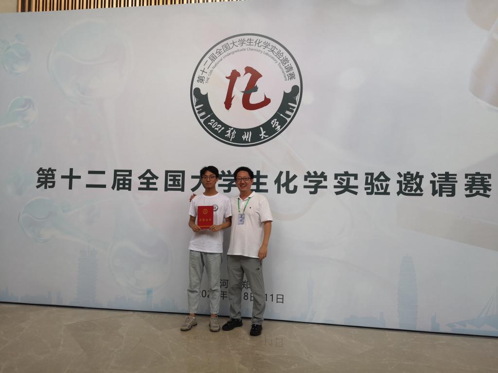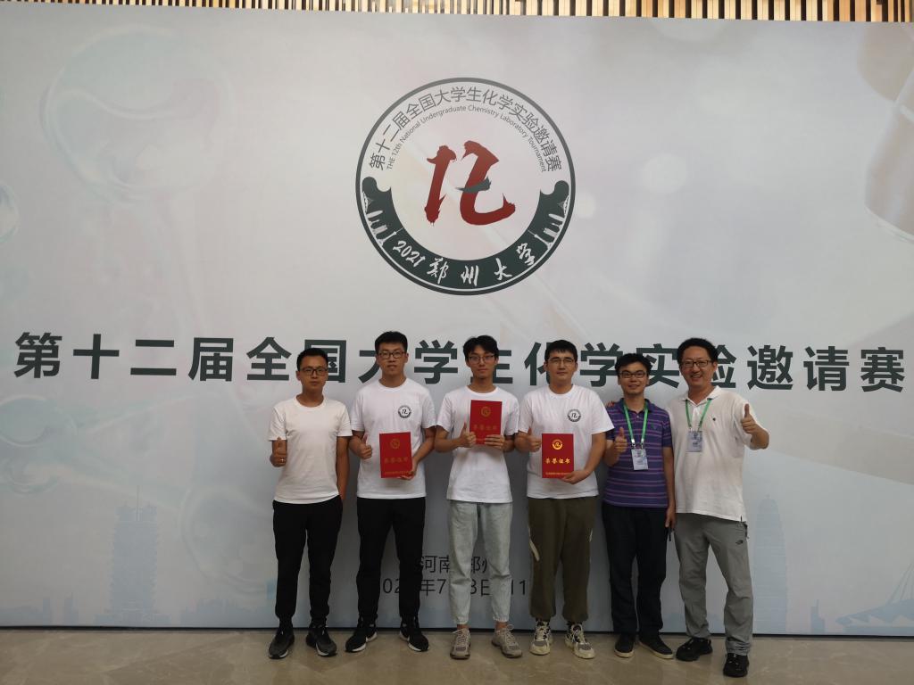7月8日至11日,第十二届全国大学生化学实验邀请赛在郑州大学举行。学院2018级本科生洪东晖、鲁鼎右和王元分别获得一等奖、二等奖和三等奖。这是学院在该赛事中取得的最好成绩,实现了一等奖零的突破。