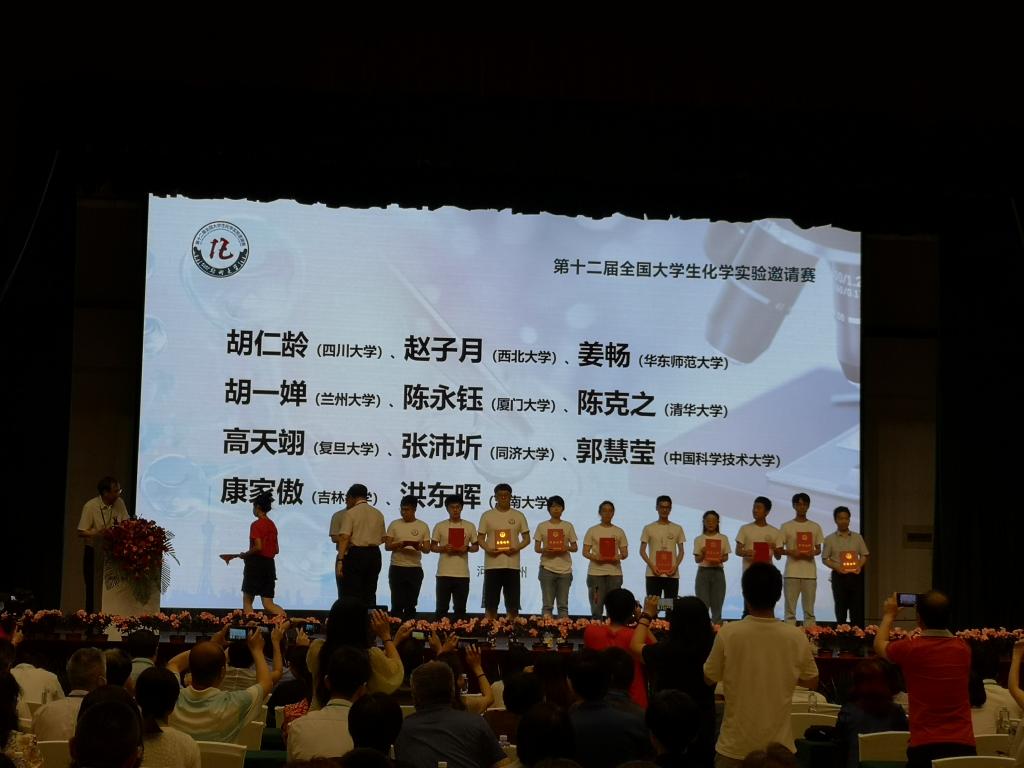 全国大学生化学实验邀请赛一等奖颁奖。