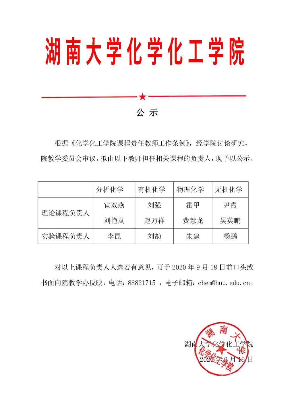 关于课程负责人的公示