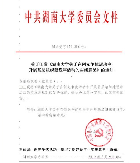 为贯彻落实中共中央、教育部党组和湖南省委关于在创先争优活动中深入开展基层组织建设年活动的有关要求,全面加强我校基层党组织建设,提高党的建设科学化水平,为学校教育事业科学发展提供坚强保证,现就我校在创先争优活动中深入开展基层组织建设年活动提出如下实施意见。