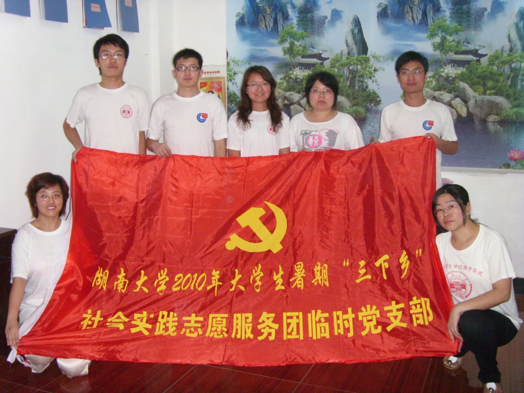 “创先争优”活动团于2010年7月12日来到宁乡县凤凰村,该团队的成员为博士、硕士研究生,同时该团队又是临时党支部的主要力量。本次活动要求参与成员必须配备校徽,以“创先争优”为此次活动的主题,要求每位党员发挥先锋模范作用,在活动中做到提前安排、具体规划、积极总结,以便及时调整工作计划。博士研究生将在本次活动中起到重要作用,他们将利用院系资源对凤凰村的水质及土壤进行检测,拟拿出参考的检测报告及分析结果,帮助村民了解本村的水质及土质情况,有利于村民进一步规划自身的生产生活;博士研究生还将进行环保知识宣讲,在村民中普及垃圾分类等相关环保知识,在思想观念上巩固垃圾分类意识,进而为新农村建设贡献一份力量;同时拟与村内党员干部群众进行座谈,讨论对“创先争优”活动的认识,交流看法以及交换意见,从不同层面认识这一活动的重要性。以上活动研究生团队及临时党支部均围绕“创先争优”这一主题,使“创先争优”的理论在实践中得到充分的发挥。