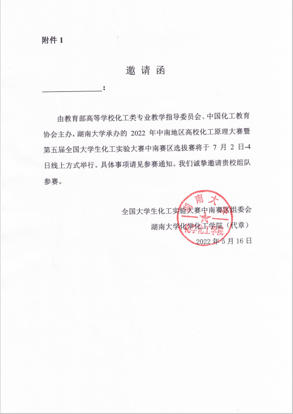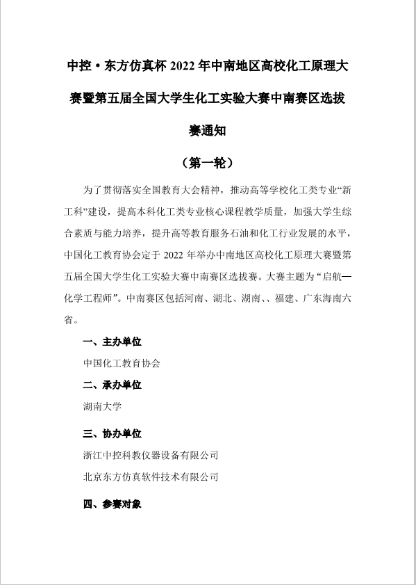 中控·东方仿真杯2022年中南地区高校化学原理大赛暨第五届全国大学生化工实验大赛中南赛区选拔赛通知