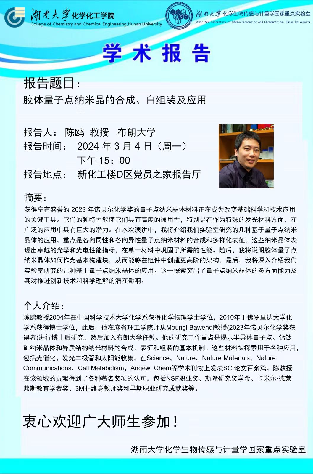 :2024年3月4日布朗大学陈鸥教授学术报告会