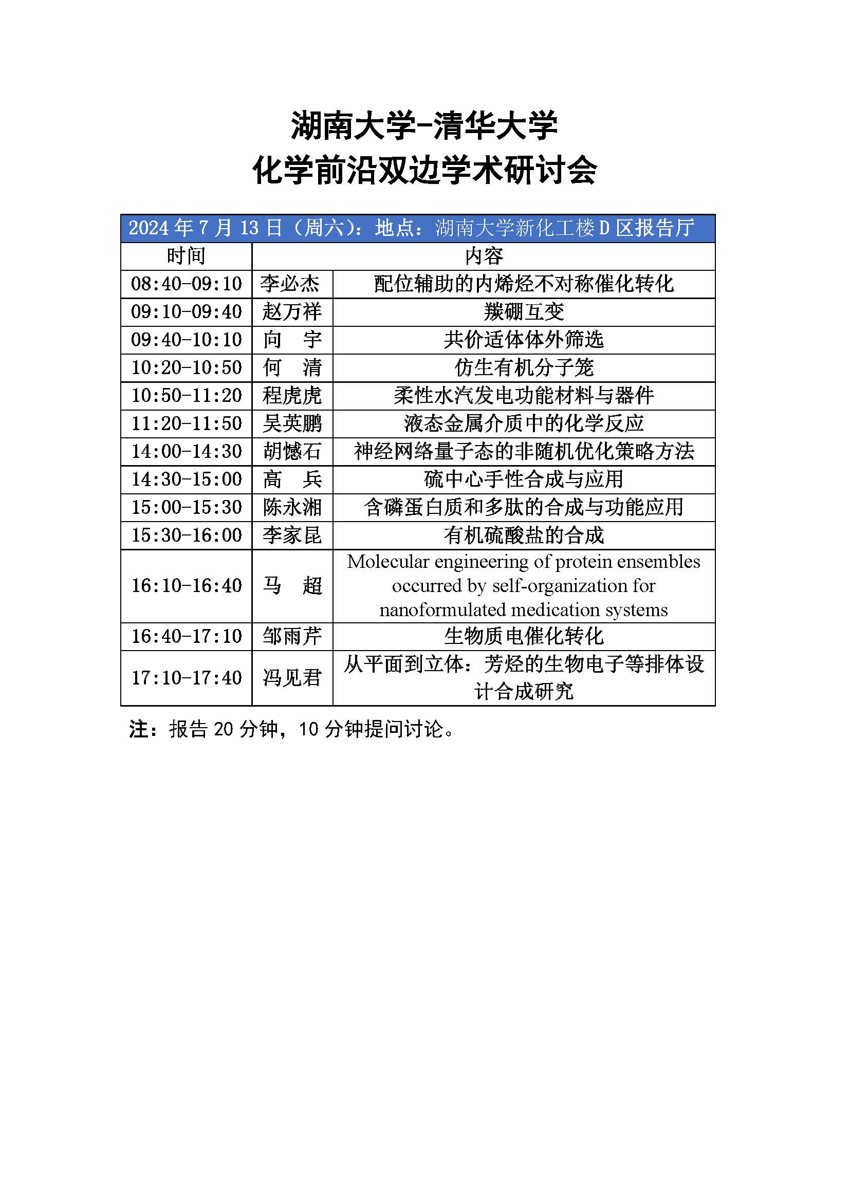 2024年7月13日色情导航 -清华大学化学前沿双边学术研讨会系列学术报告