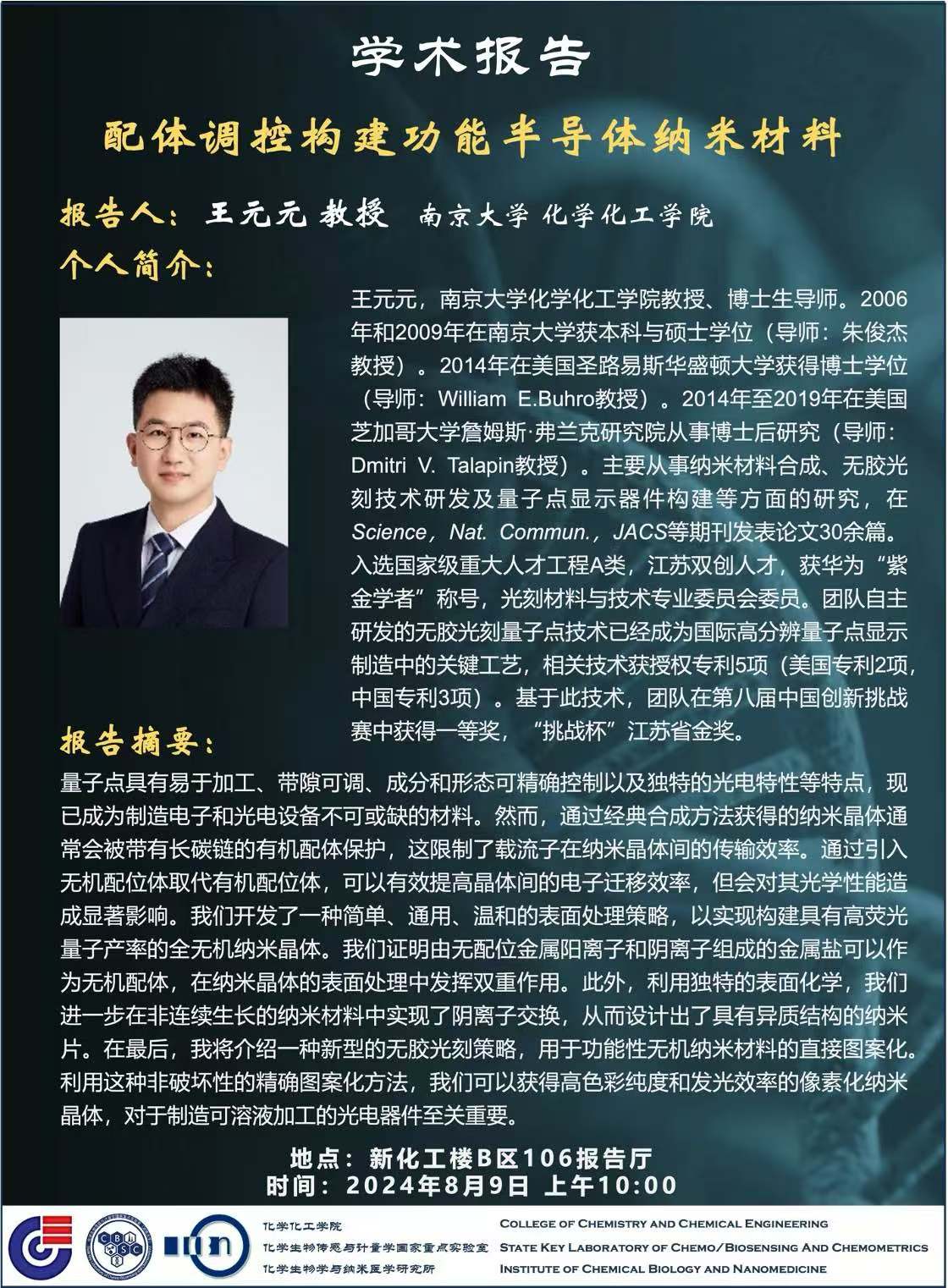2024年8月9日南京大学王元元教授学术报告会