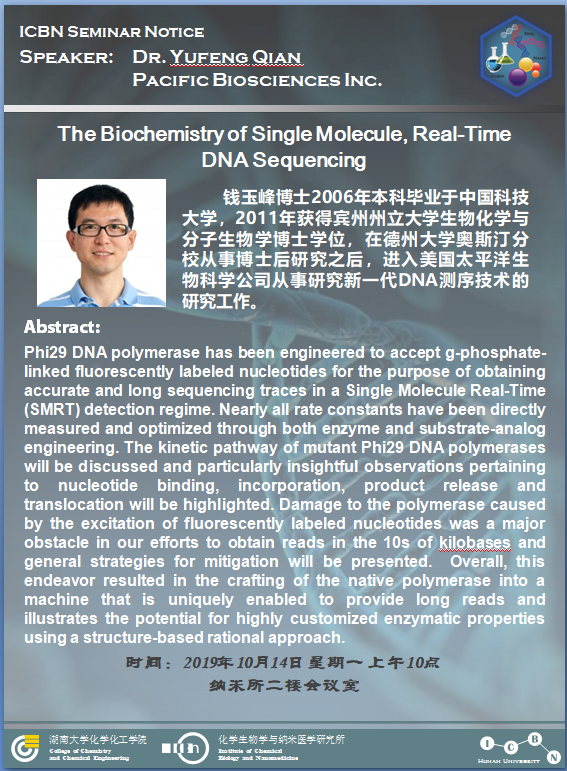 2019年10月14日美国太平洋生物科学公司钱玉峰博士学术报告会