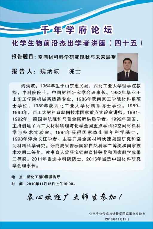 2019年11月15日西北工业大学魏炳波院士学术报告会