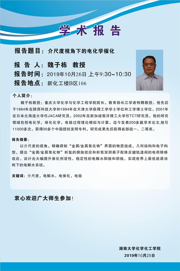 2019年10月26日重庆大学魏子栋教授学术报告会
