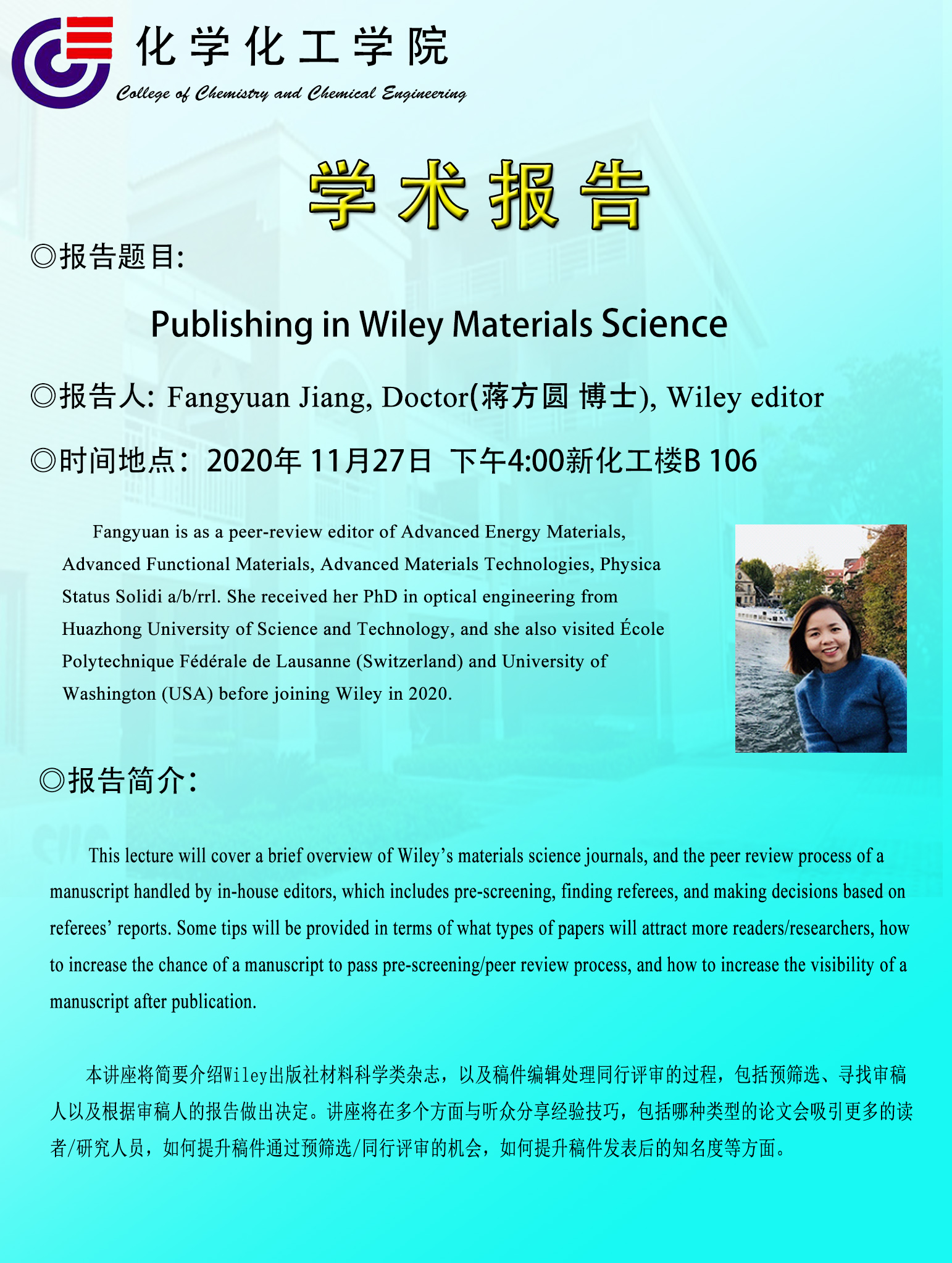 2020年11月27日Wiley数据库蒋方圆博士学术报告会