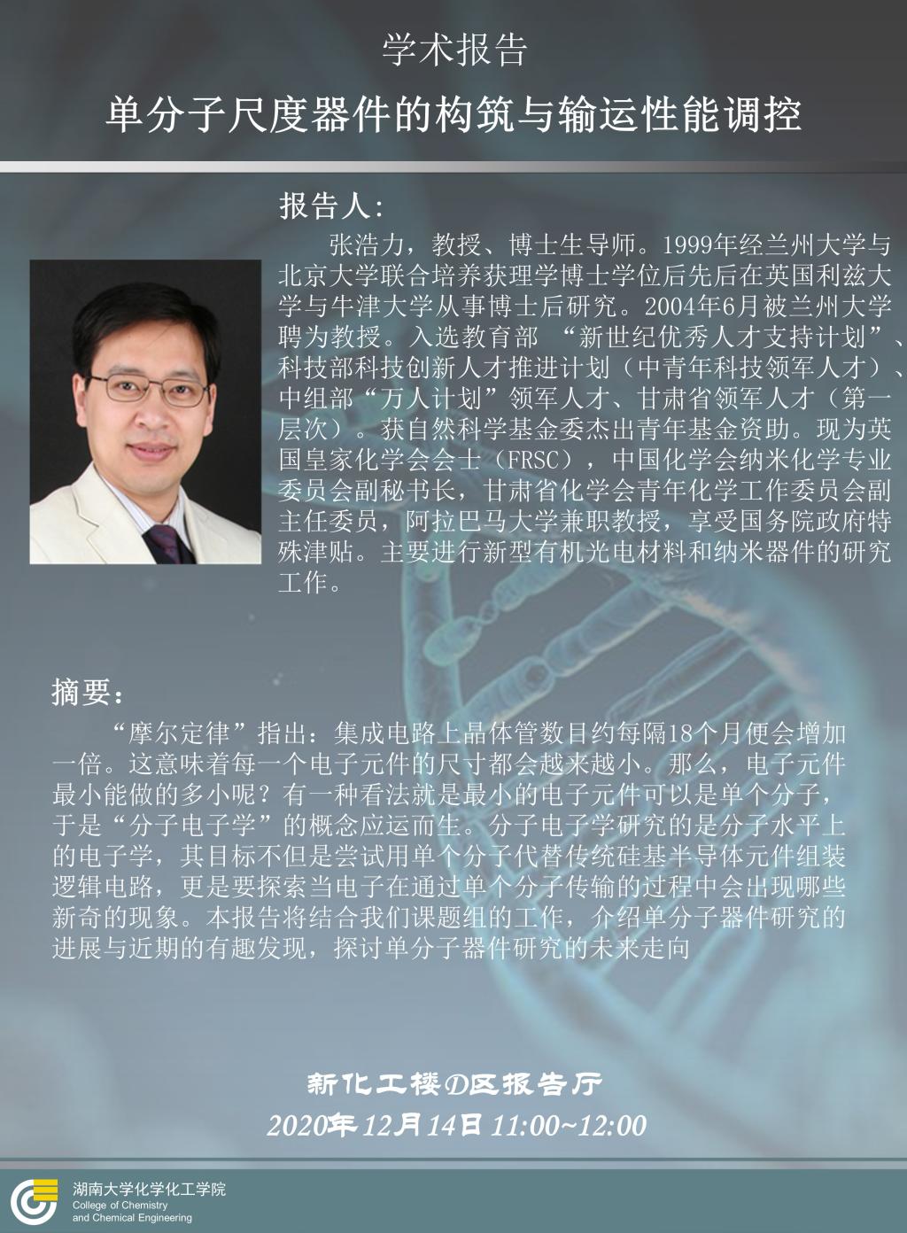 2020年12月14日兰州大学张浩力教授学术报告会