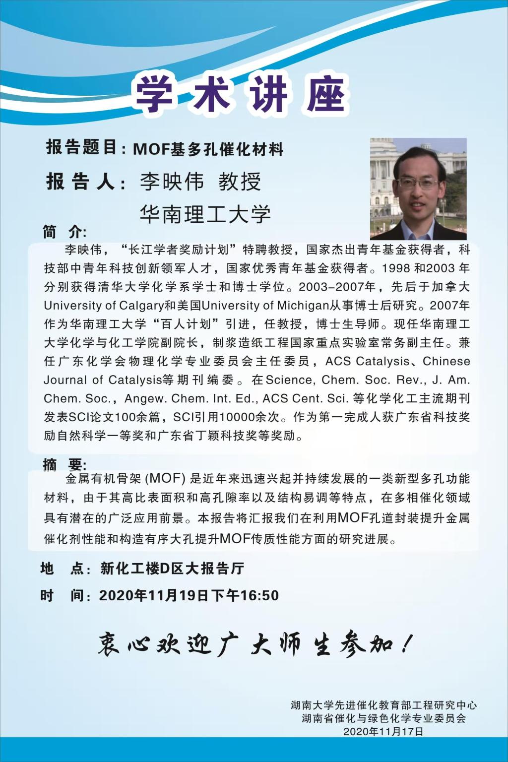 2020年11月19日华南理工大学李映伟教授学术报告会