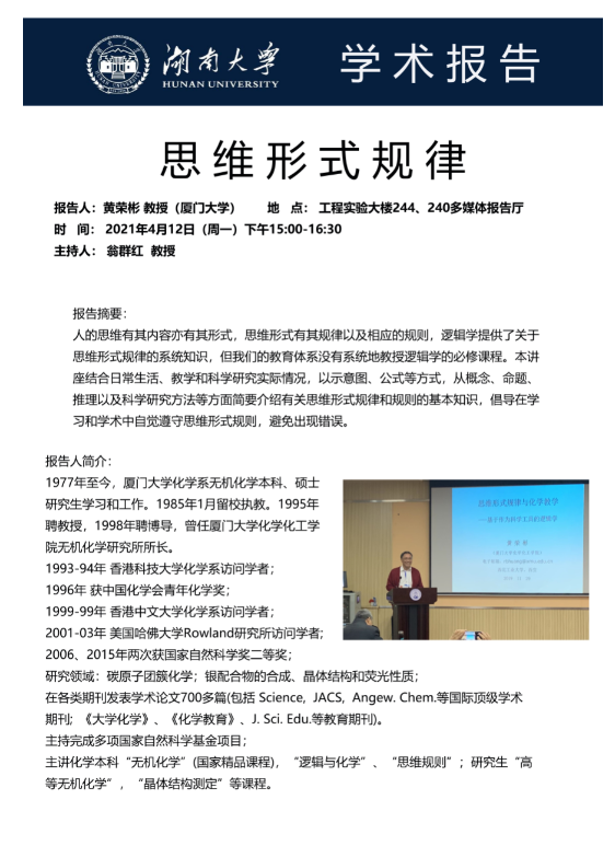 2021年4月12日厦门大学黄荣斌教授学术报告会