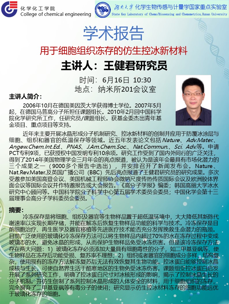 2021年6月16日中国科学院化学研究所王健君研究员学术报告会