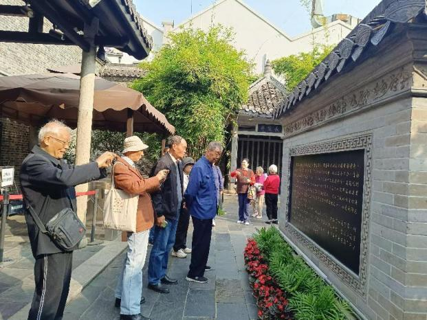 11月1日上午化学化工、生物学院退休党支部组织党员及部分家属参观贾谊故居和李富春故居。贾谊故居位居于太平街口与解放西路交汇处,这里雅致清静,与太平街的喧嚣繁华形成鲜明的对比故居为三进四合院,从内到外有贾太傅祠、太傅殿、寻秋草堂,两旁有贾谊井、碑廊、贾谊石床、古碑亭和佩秋亭。